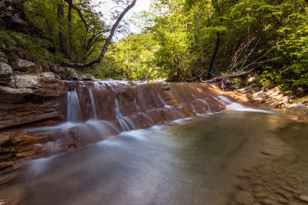 Каждый из Гебиусских водопадов уникален и неповторим, здесь нет одинаковых или похожих водопадов. Тешебские водопады питаются от родников и снежных вершин, поэтому весной они полноводны. Прогулка по такому удивительному местечку, наполнит нас гармонией.