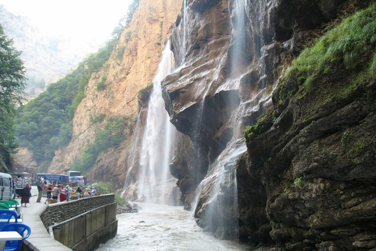 Экскурсия по Чегемской теснине. Среди отвесных скал высотой 350 м. над рекой, которые украшены природными творениями: След Бога, Каменный гриб, Дух теснины и т.д. Чтобы с разных сторон полюбоваться стеной водопадов, можно подняться на смотровые площадки над водопадами или напротив водопадов и со стороны полюбоваться водной феерией. Обед в кафе (дополнительно).