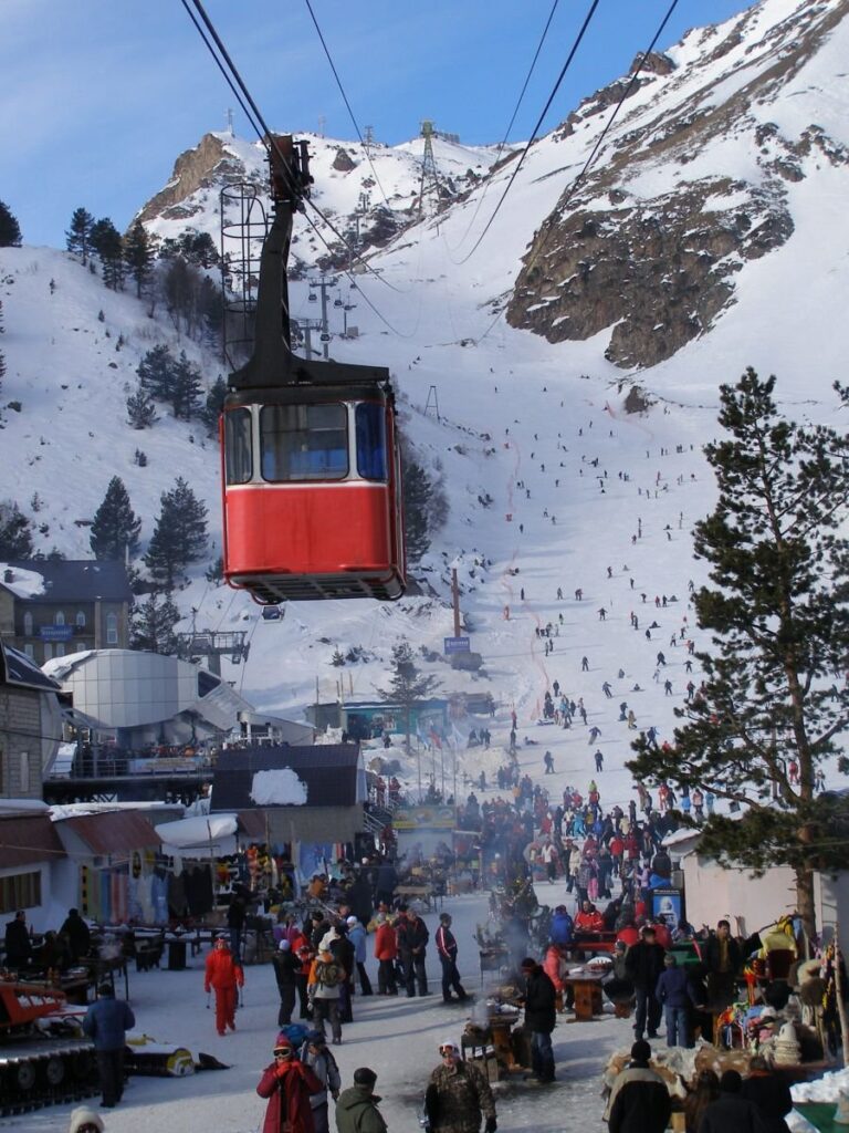Снежно-ледовый Эльбрус завораживает и манит своей недоступностью. Этот край богат сосновыми лесами, отличается живописными пейзажами, бурными реками и зеркалами голубых озёр, грандиозными водопадами, чистотой воздуха. Дорога ведет вдоль Баксанского ущелья к подножью Эльбруса. Автобусная часть маршрута заканчивается на поляне Азау. С нее начинается подъем на Эльбрус. Три очереди канатных дорог, первые две – вагончик. Третья – кресельная – от станции Мир (3500 м) идет до высоты 3700 м над у.м. до «бочек» — это учебно-тренировочная база «Мир» по горнолыжному спорту, Госкомспорта России.