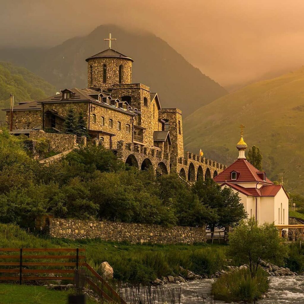 «Духовное сердце Осетии»- Мы посетим Аланский Свято-Успенский мужской монастырь – это самая высокогорная православная обитель на территории России, расположенная на высоте 1300 метров. Здесь можно подняться по «лестнице отпущения грехов», насладиться тишиной и уединением обители, а также увидеть точную копию древних Аланских храмов.