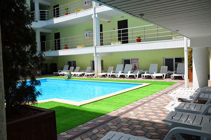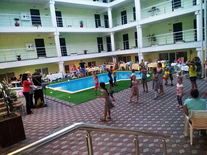 Отель «На Эскадронной» это трехэтажный комплекс в самом сердце курортной зоны. Внутренний дворик с БАССЕЙНОМ и фонтаном, окруженный шезлонгами. Здесь можно забыть о времени, наслаждаясь прохладой, не выходя из отеля